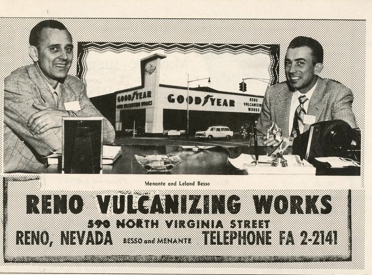 Founded in 1922 by Italian immigrants Augustino “Gus” Besso and Frank Menante, Reno Vulcanizing began as a small tire and boot repair shop in downtown Reno. Evolving with the city and the rise of automobiles, it became one of the country’s first Goodyear Tire dealerships and is now the oldest continuously operating independent Goodyear dealership in the U.S.