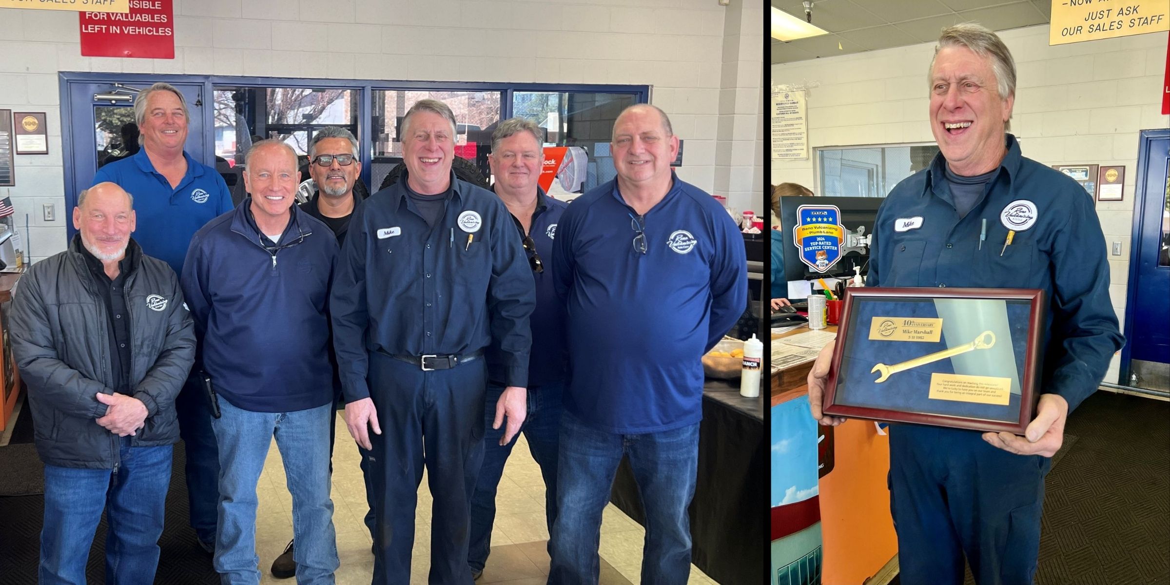 Reno Vulcanizing celebrates Mike Marshall’s 40th Anniversary with the company! Mike has been an integral part of our team for over four decades, demonstrating unmatched automotive skill and leadership to generations of customers and Reno Vulcanizing mechanics.